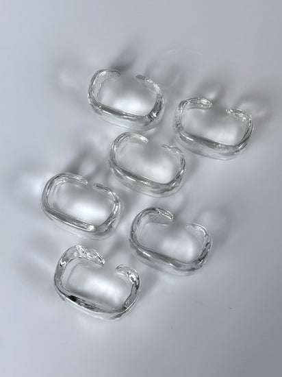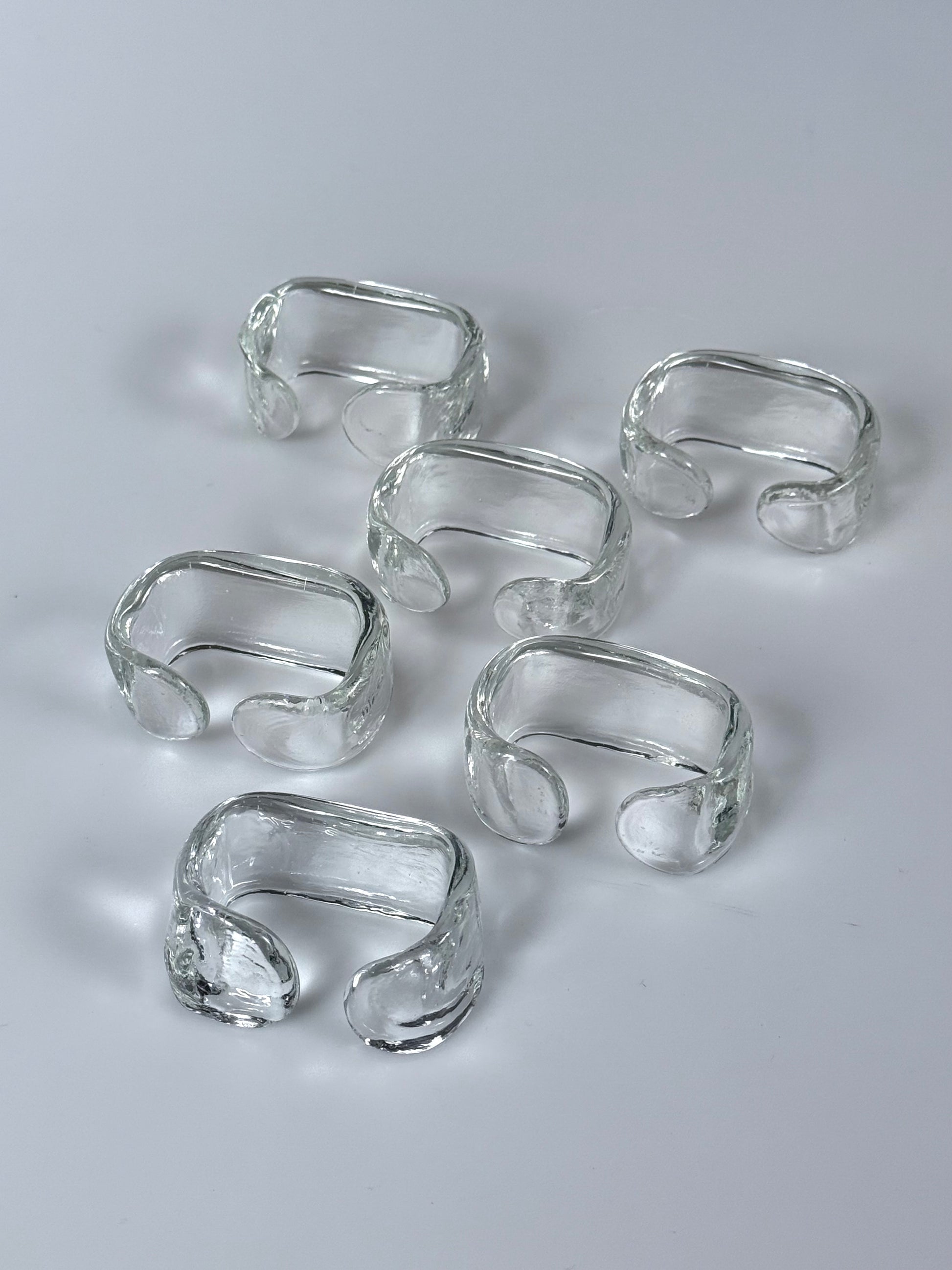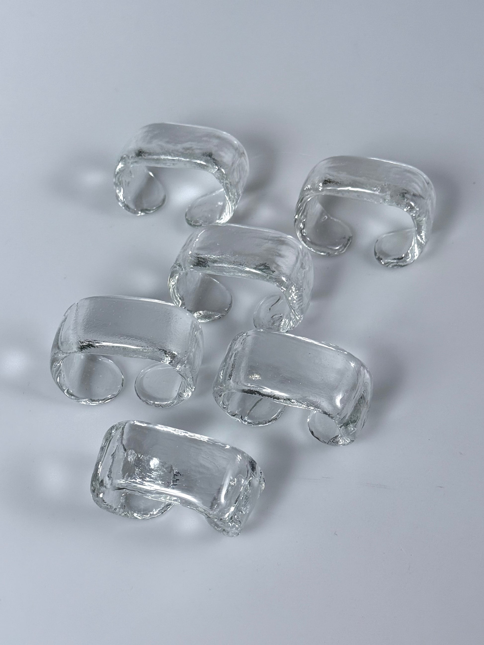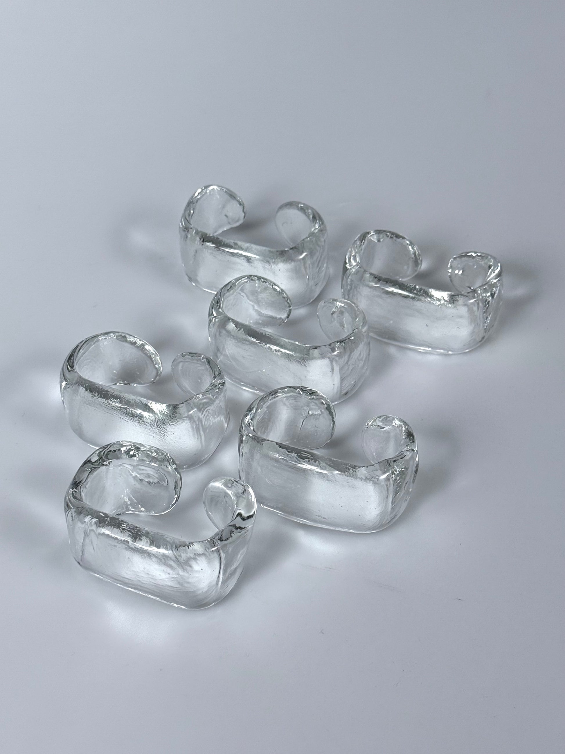 Set bestehend aus sechs Serviettenringen aus massivem Eisglas, 1960er.