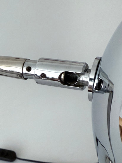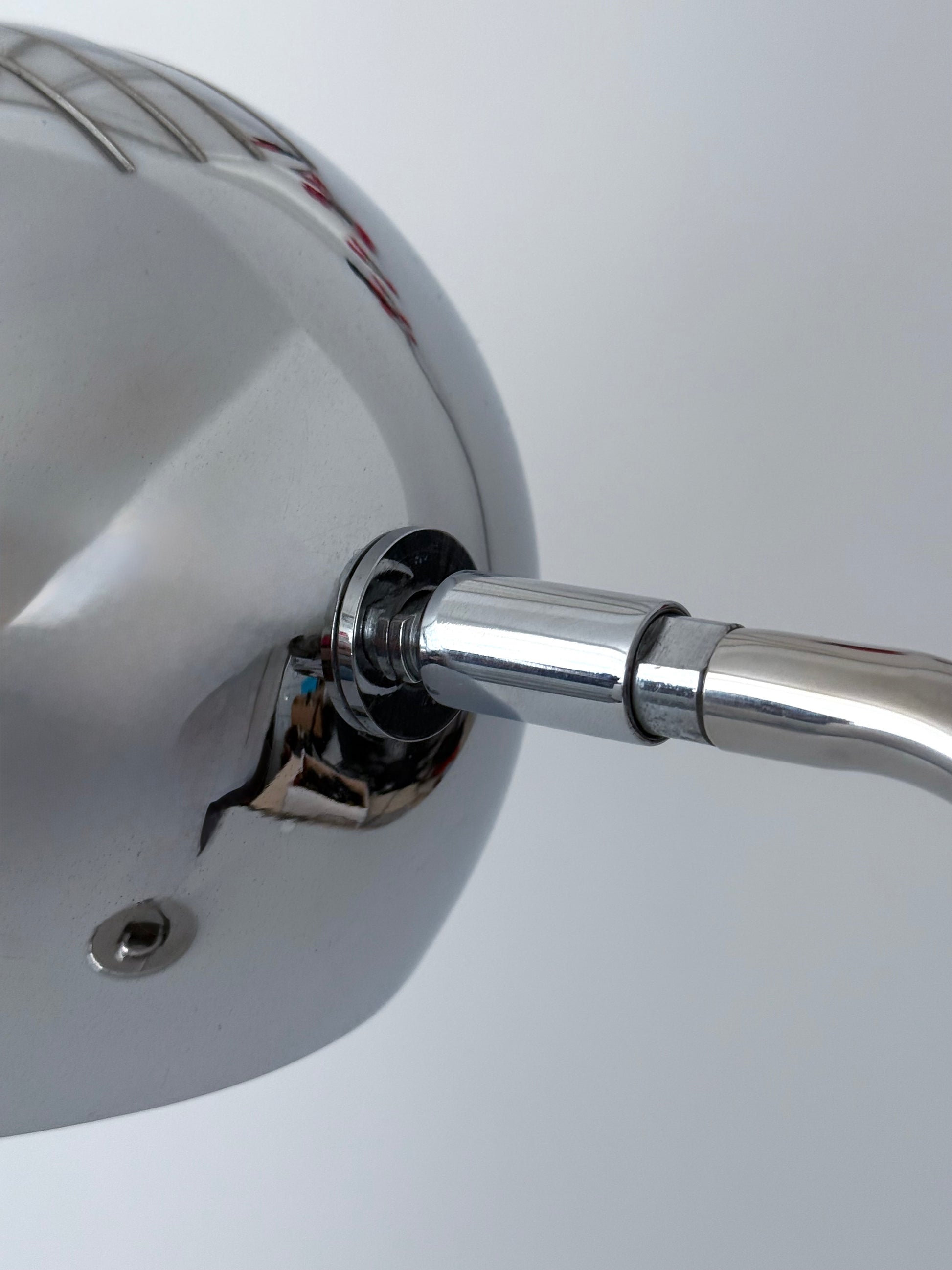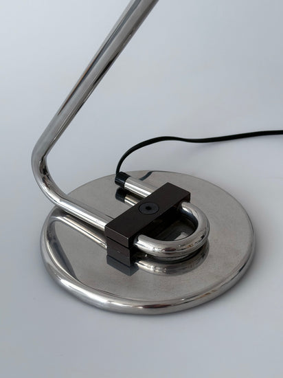 Seltene Tischleuchte aus verchromten Metall, Entwurf Joe Colombo zugeschrieben, Frankreich, 1974.