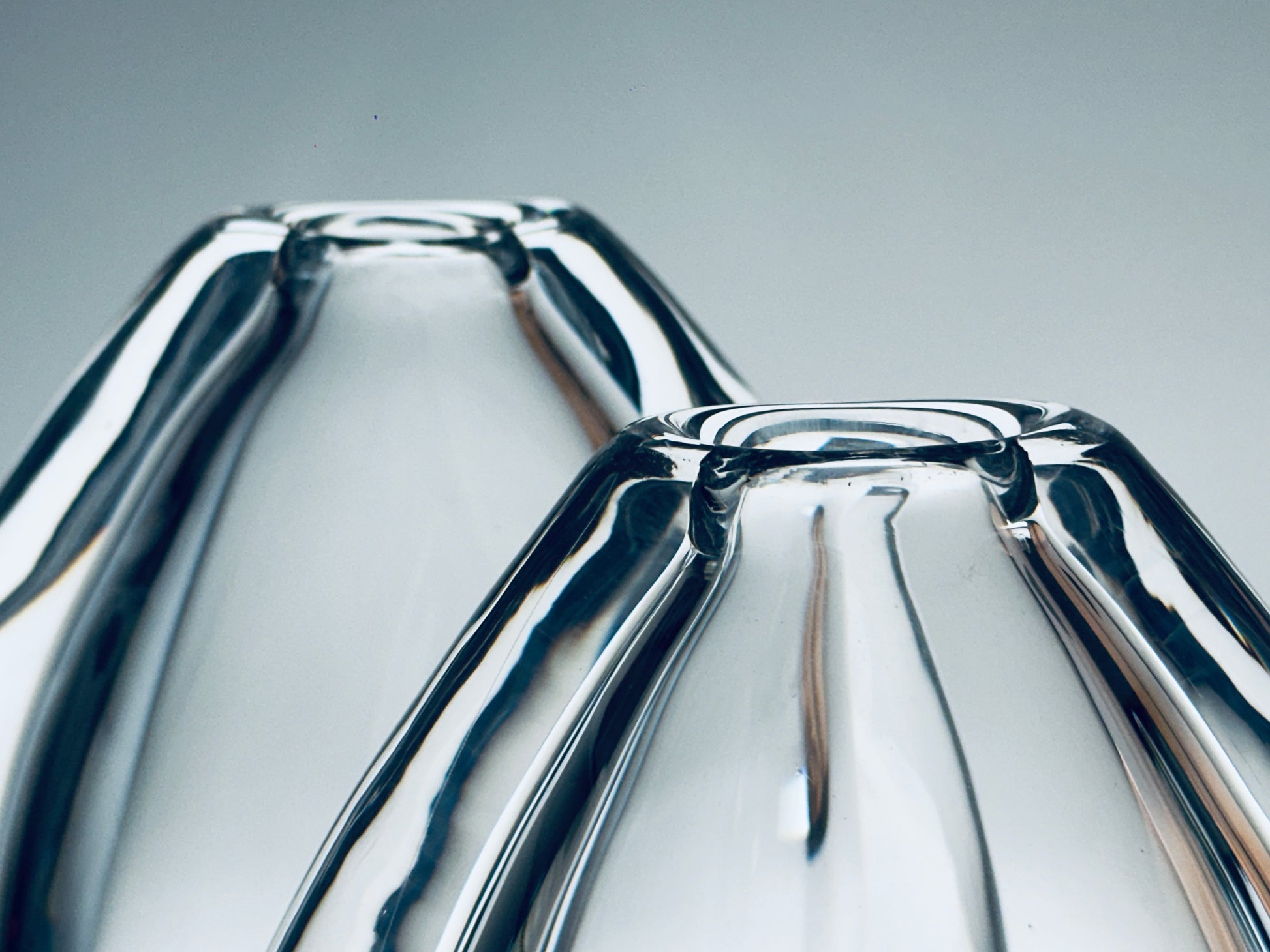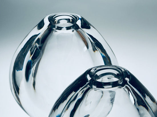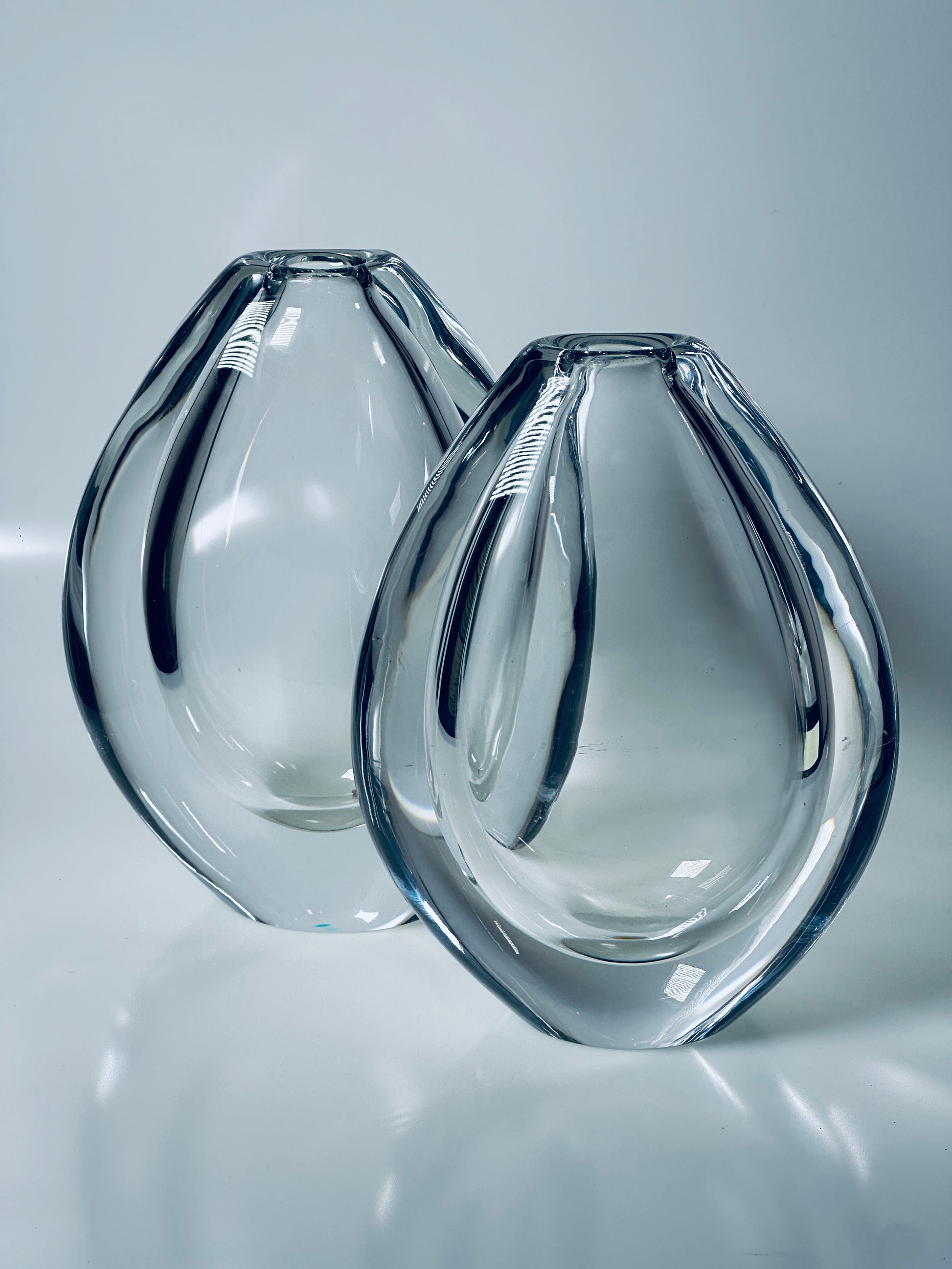Wunderschöne schwere und dickwandigge Glasvase, Design Sven Palmquist für Orrefors, 1960er, Schweden. Die Vase besticht durch ihre organische Form. Sie ist aus schwerem Kristallglas gefertigt, und handsigniert mit "orrefors, pu3632".