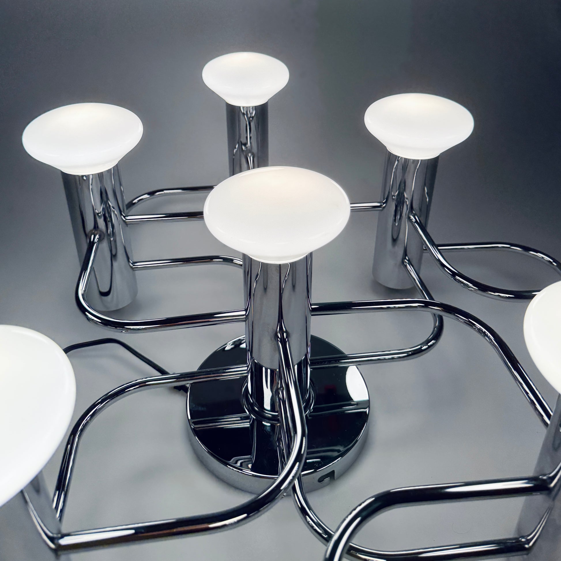 Die Leuchte befindet sich in nahezu perfektem Zustand. Sie wurde gereinigt, poliert und erfolgreich auf Funktionsfähigkeit getestet.