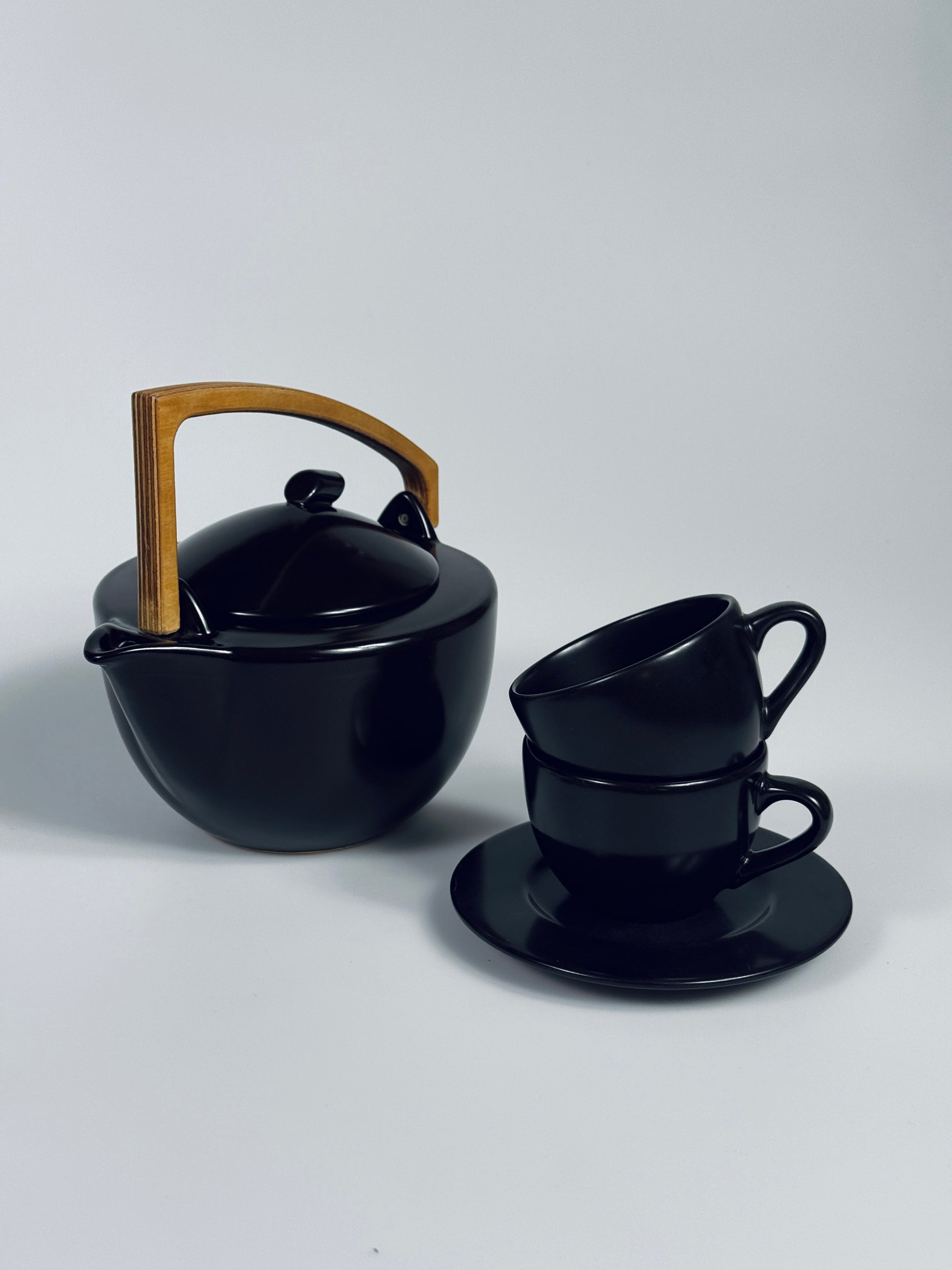 Die zwei Tassen plus zugehörige Untertassen auf dem letzten Bild werden auf Wunsch kostenfrei mitgesendet, sie gehören zum Tee-Service dazu, zeigen aber eine deutliche Mattierung der schwarzen Glasur, daher wurden sie nicht mit im Preis berücksichtigt.